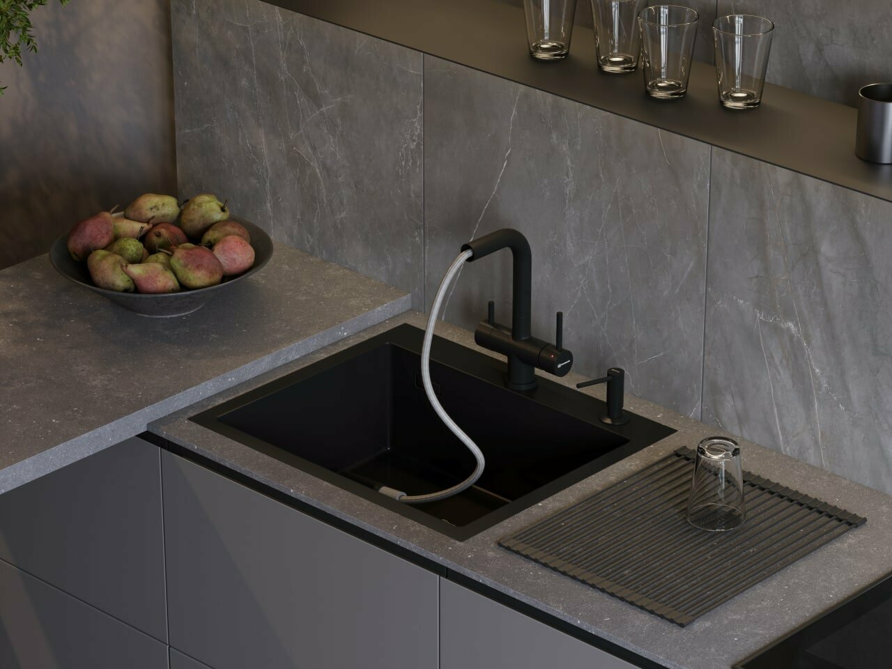 | Плюсы: | Стильный дизайн, особенно в сочетании со смесителем и мойкой той же марки |