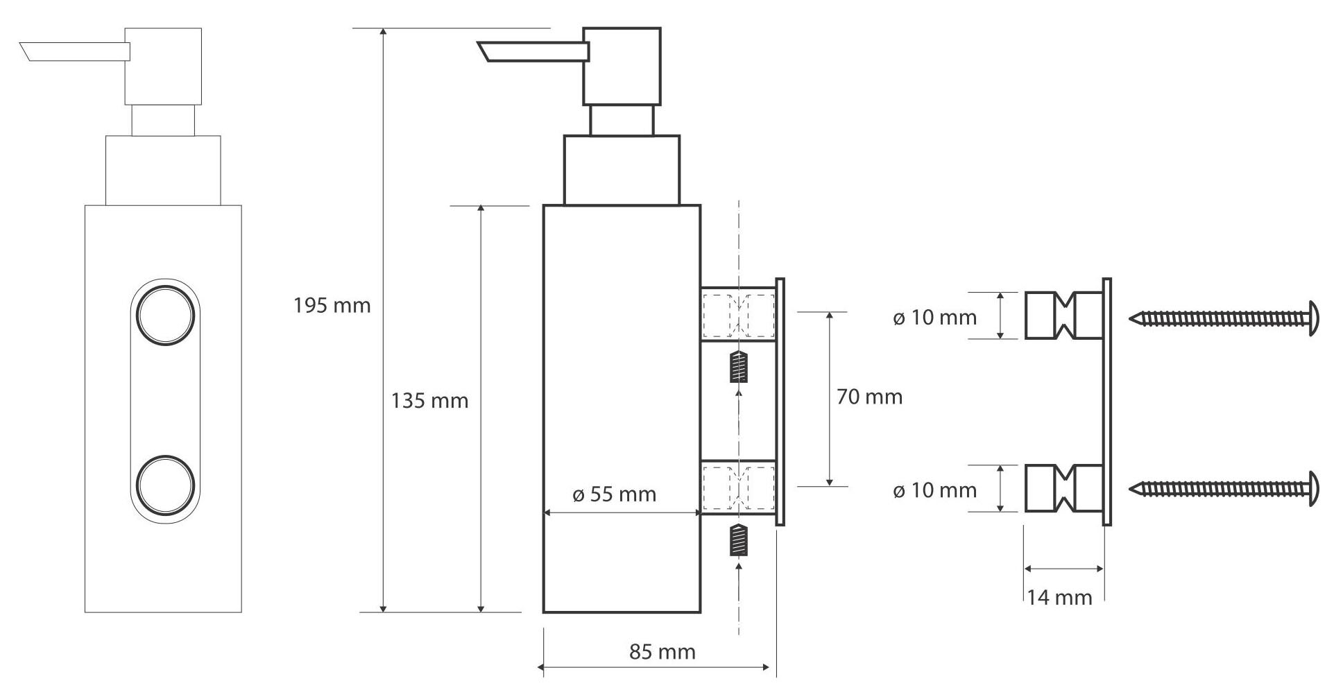 Дозатор для жидкого мыла Omega настенный метал. 150ml 55x195x85мм, хром 104609172