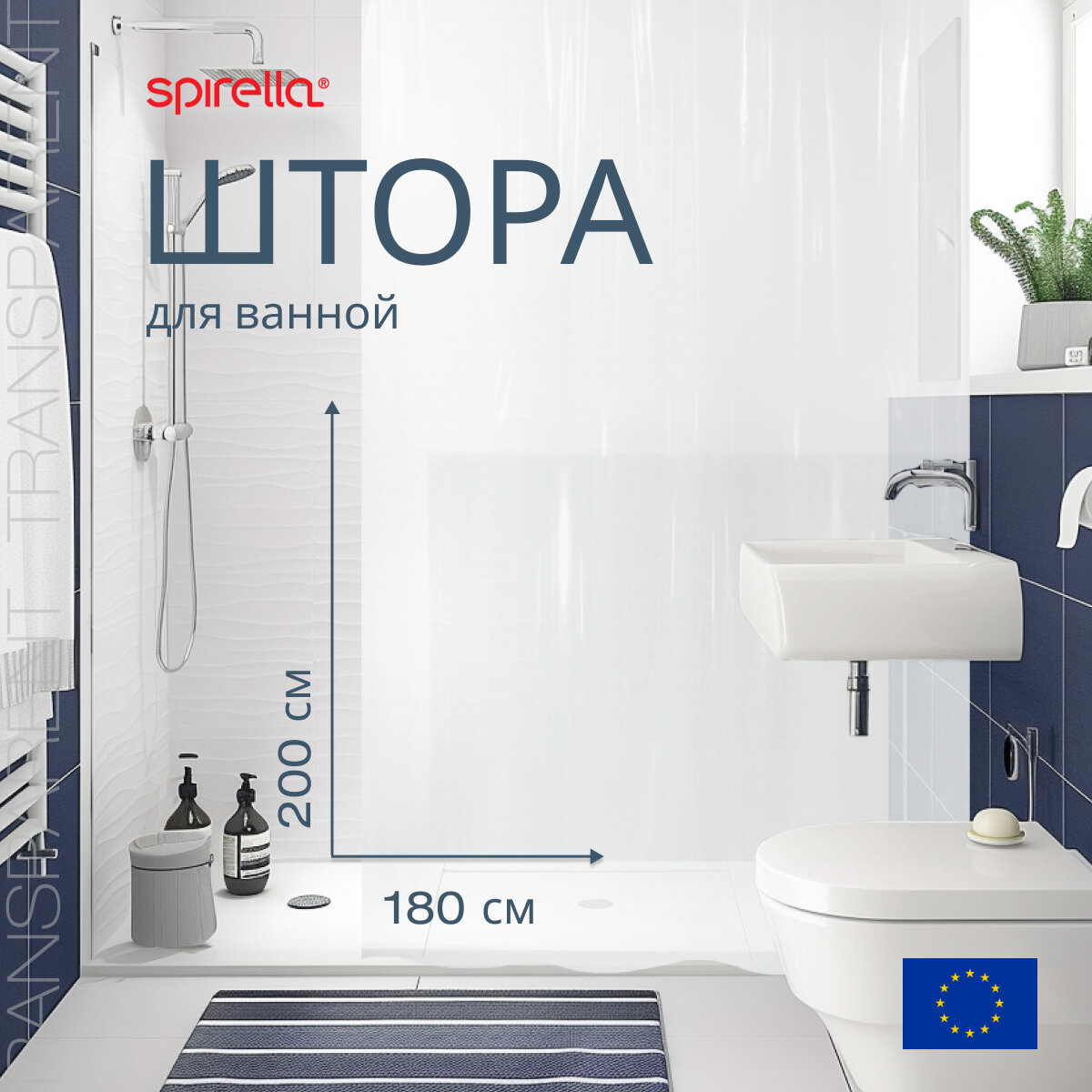 Штора для ванной прозрачная Spirella Transparent, 180x200см, полиэтилен 1018732