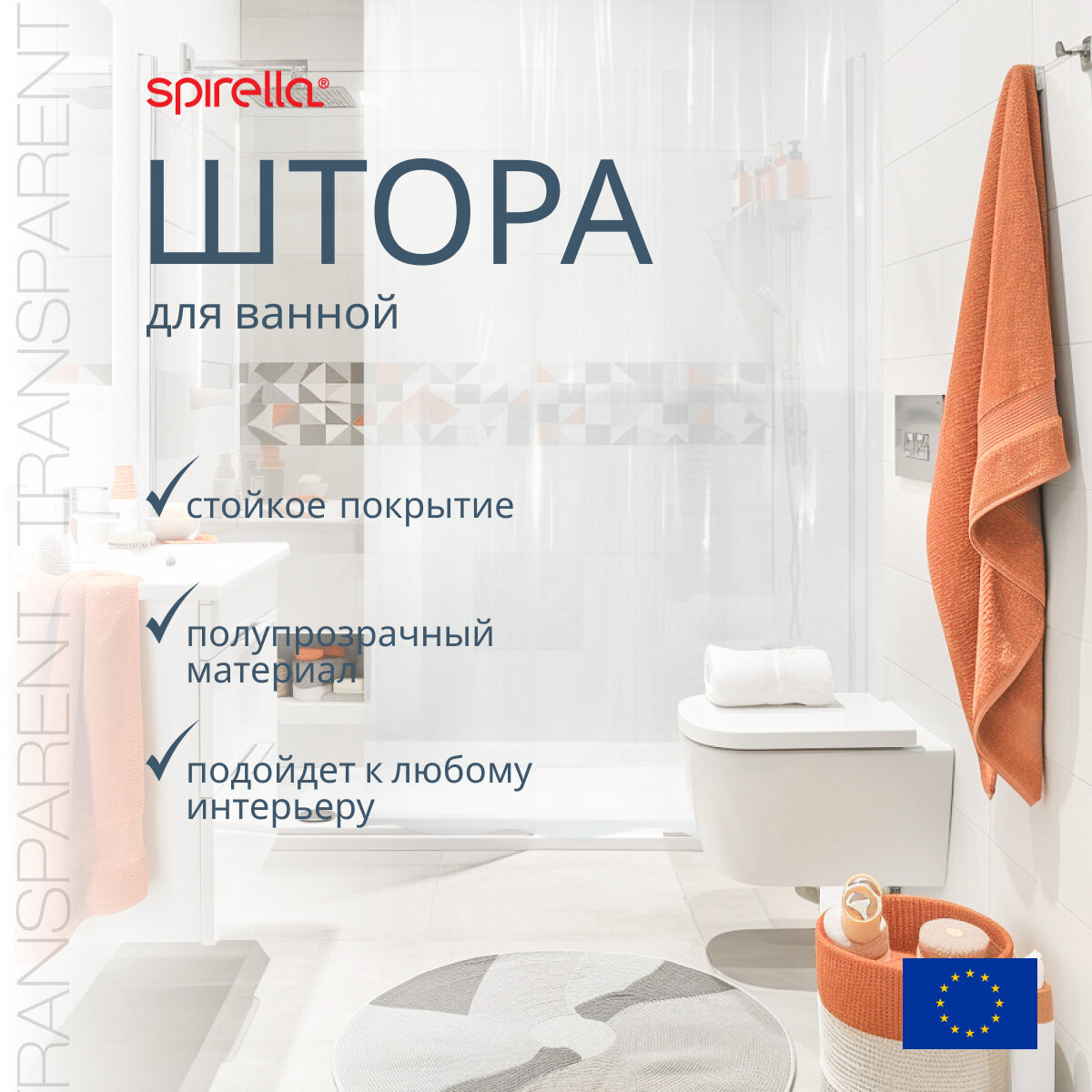 Штора для ванной Spirella Transparent, 180х200см, цвет прозрачный интересное: