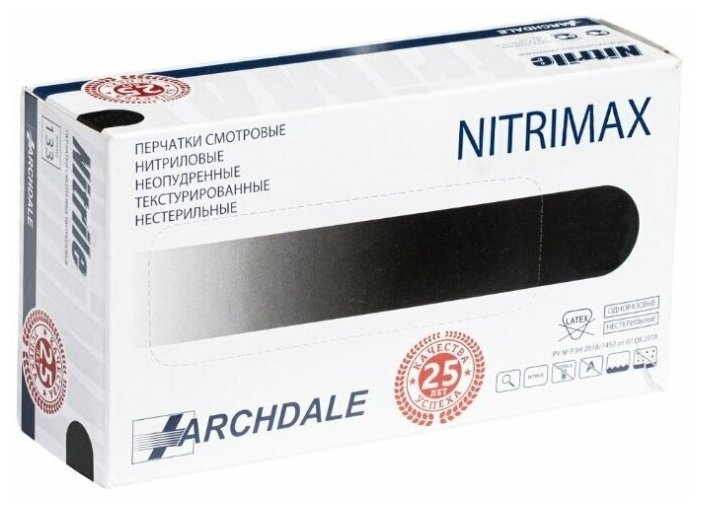 Перчатки Archdale NitriMAX, 50 пар, размер: XS, цвет: черный, 1 уп.