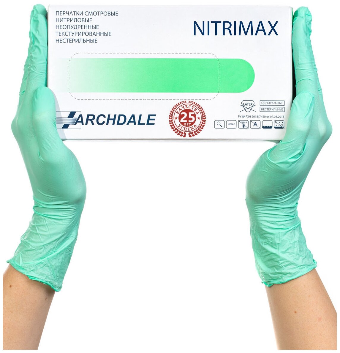 Перчатки Archdale NitriMAX, 50 пар, размер: L, цвет: зеленый, 1 уп.