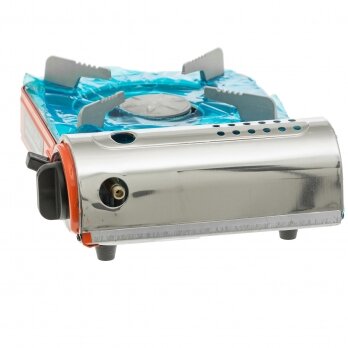 | Плюсы: | Плитка легкая, удобная, в удобном кейсе. Кроме туристических газовых баллонов, есть возможность подключить большой газовый балон. |