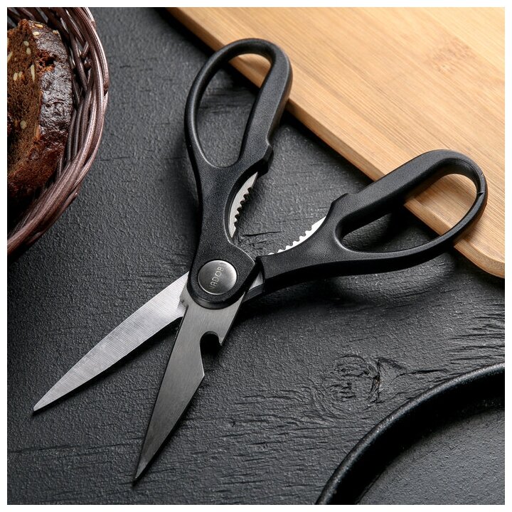 Ножницы кухонные Доляна «Драйв», 22 см, с открывалкой для бутылки, цвет микс