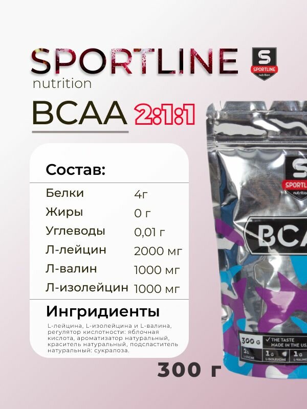 SportLine Nutrition BCAA 2:1:1, клубника, 300 гр. пакет