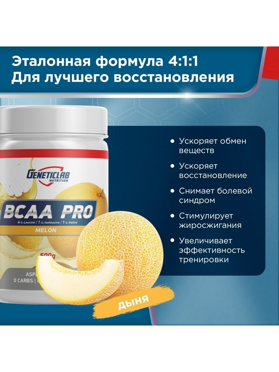 Купить Аминокислоты BCAA (БЦАА) Geneticlab Nutrition BCAA Pro (500 г) Дыня