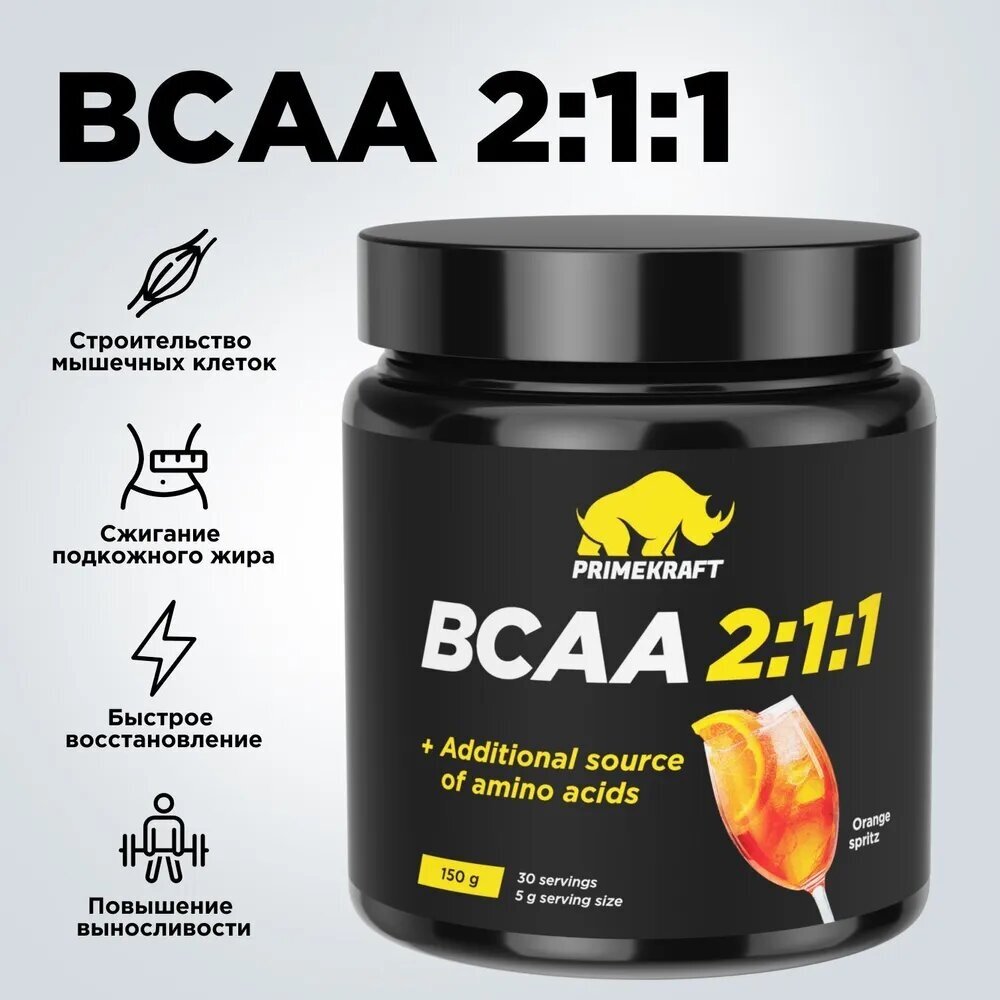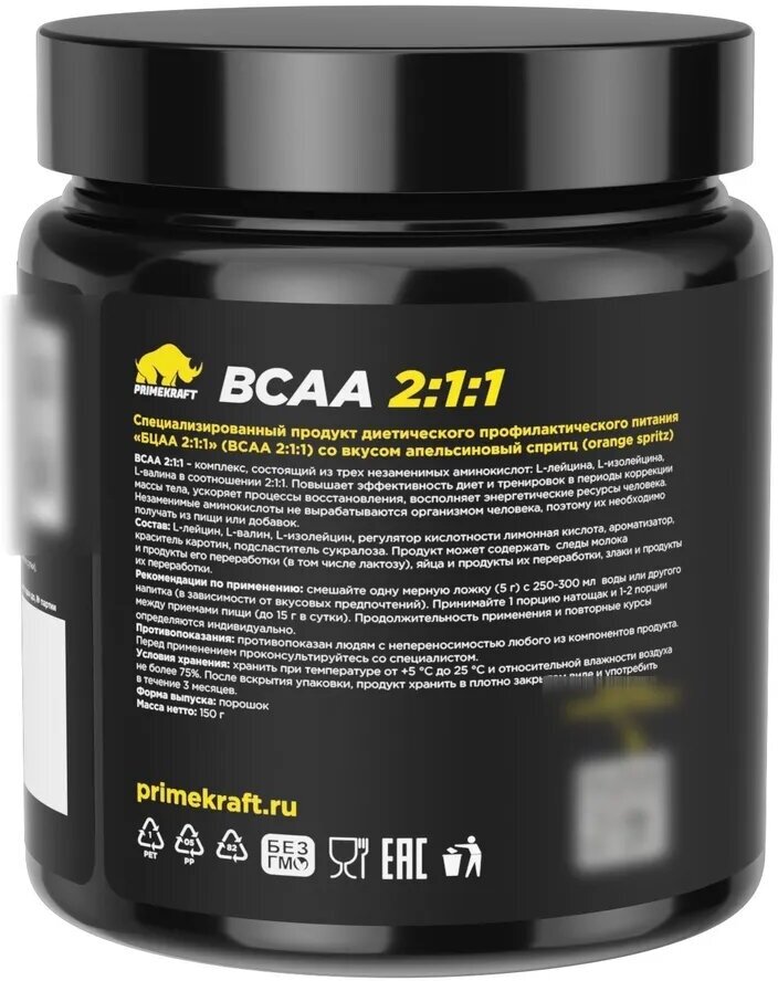 Купить Аминокислоты PRIMEKRAFT BCAA 2:1:1 (БЦАА) со вкусом "Апельсиновый спритц", 150 г (30 порций)