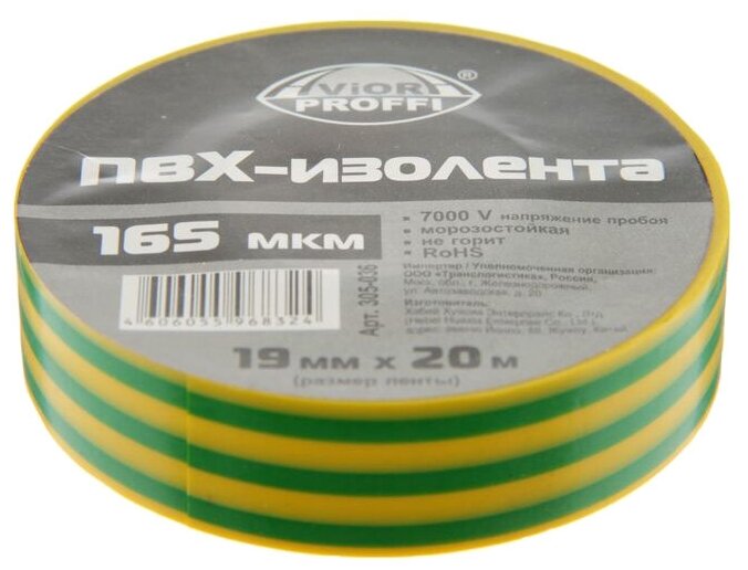 Купить Изолента ПВХ профессиональная, 19 мм х 20 м, AVIORA (желто-зеленая) (305-036)
