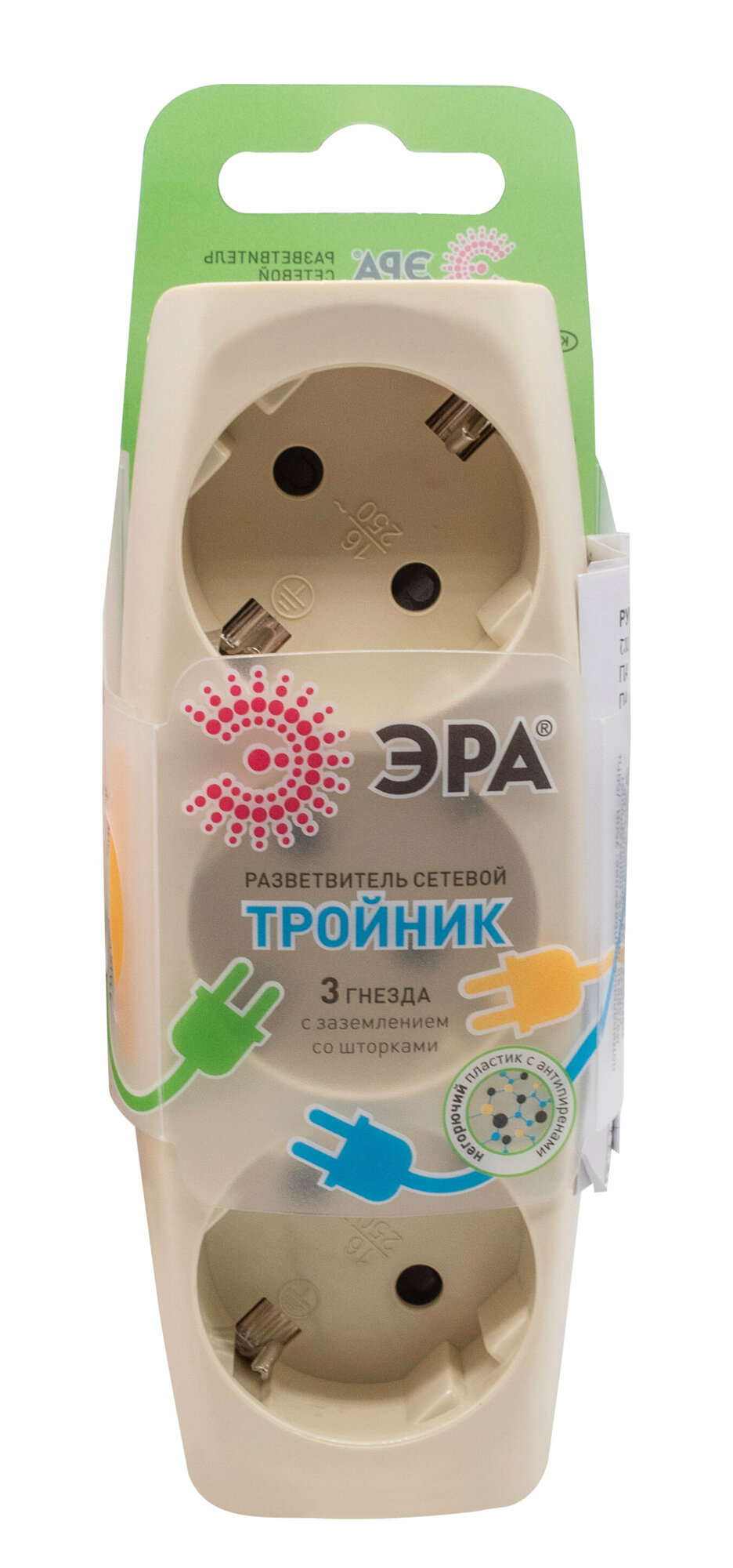 ЭРА разветвитель (тройник) 3 роз. 16А сл. кость, земля, шторки (линейный) SP-3e-I (арт. 410807)