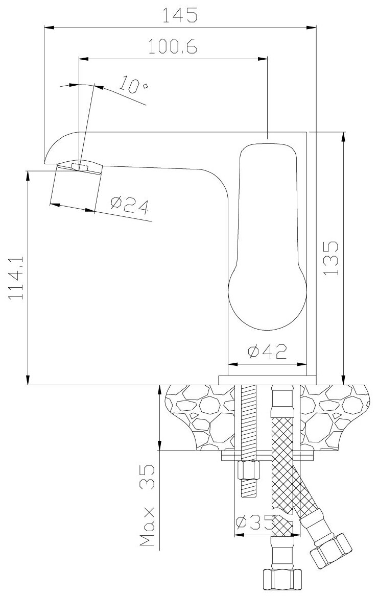 | Длина излива | 101 мм |