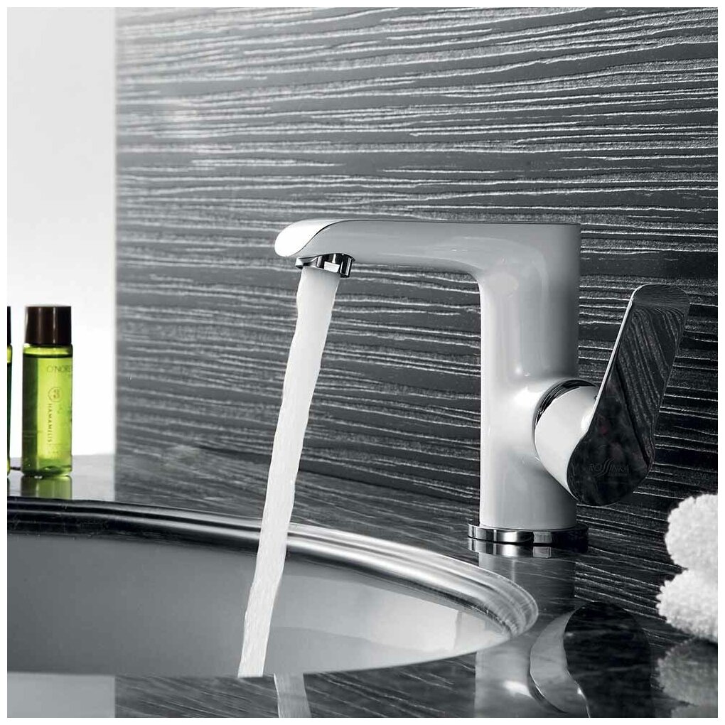 Смеситель для раковины Rossinka W белый/хром однорычажный (W35-11)