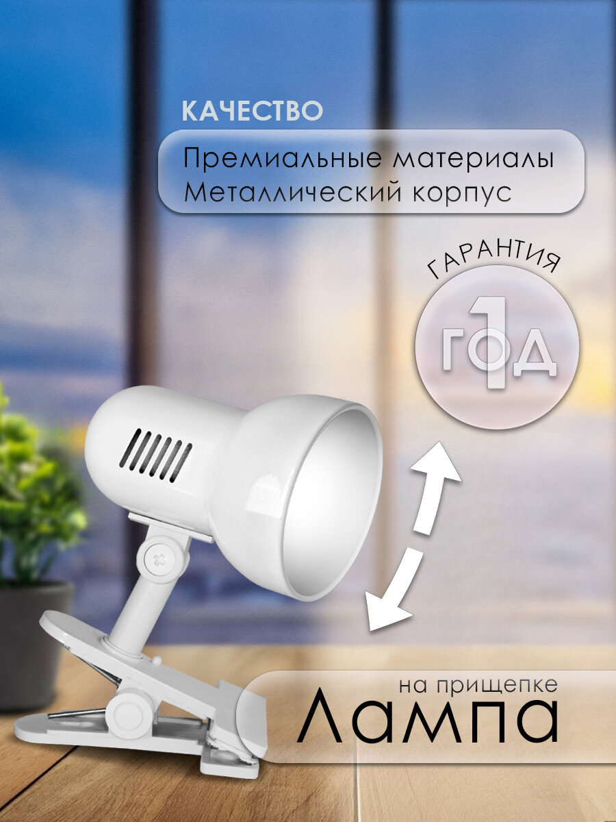 Светильник-прищепка Camelion H-035, настольный, лампа Е27, белый