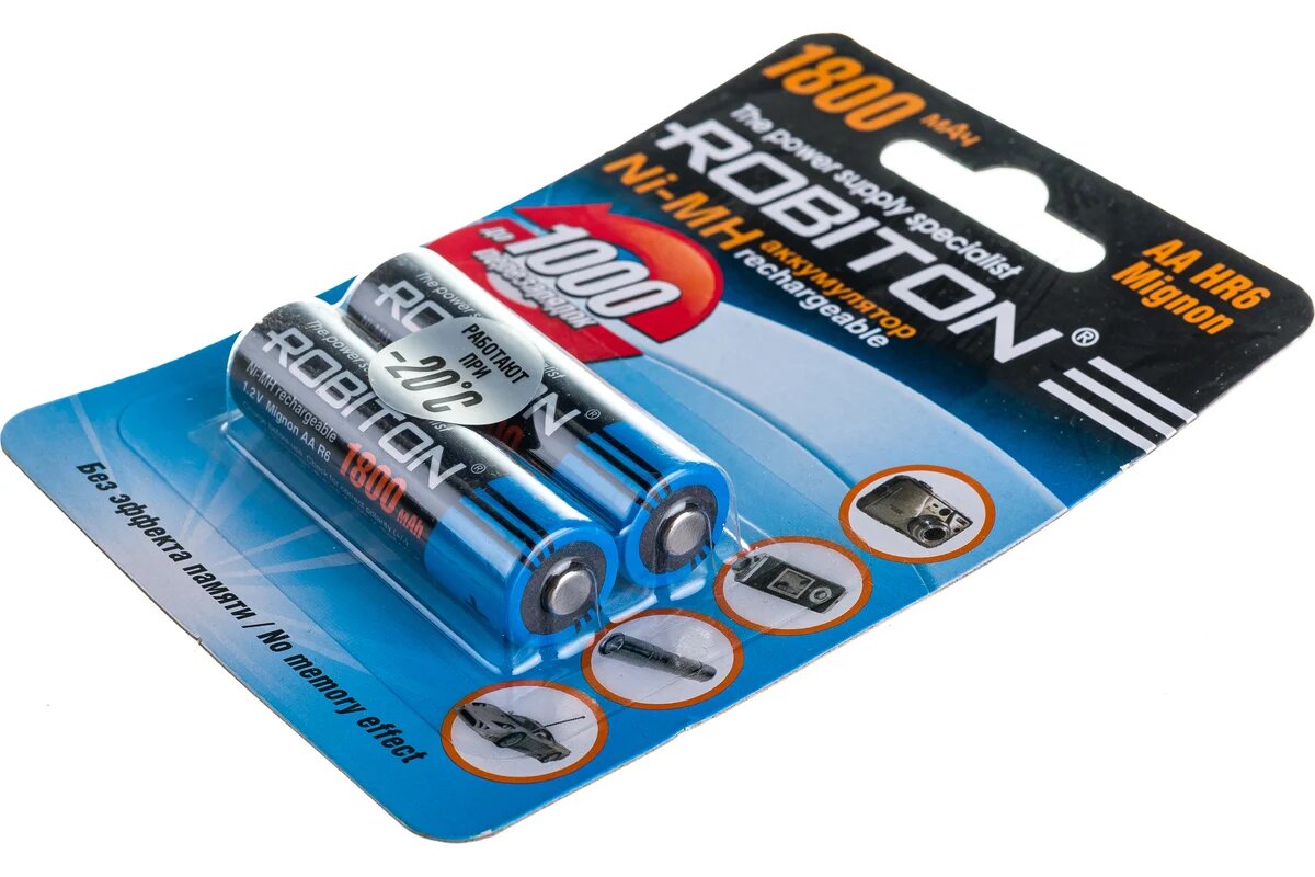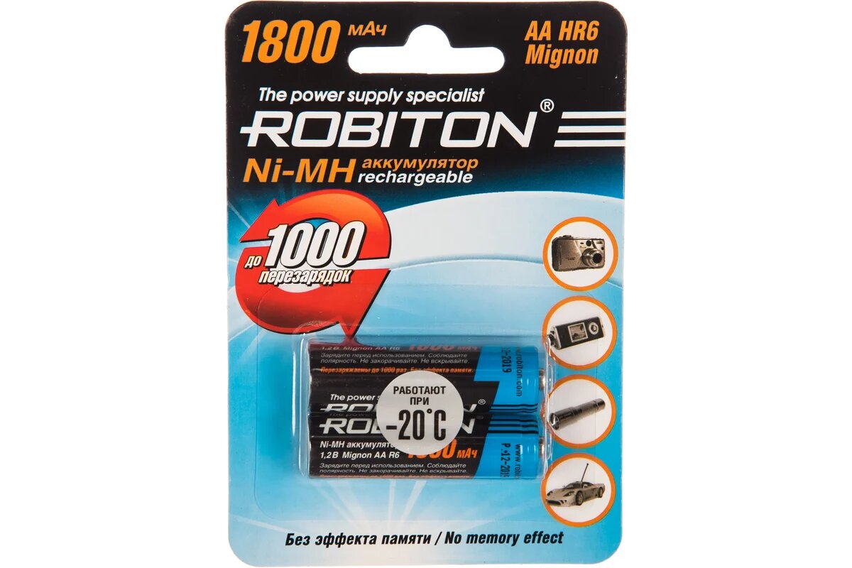 Ni-Mh аккумуляторы ROBITON 1800MHAA-2 BL-2 8790, 1.2В, 1800мАч, размер АА (HR6), металлогидридные, 2шт в упаковке