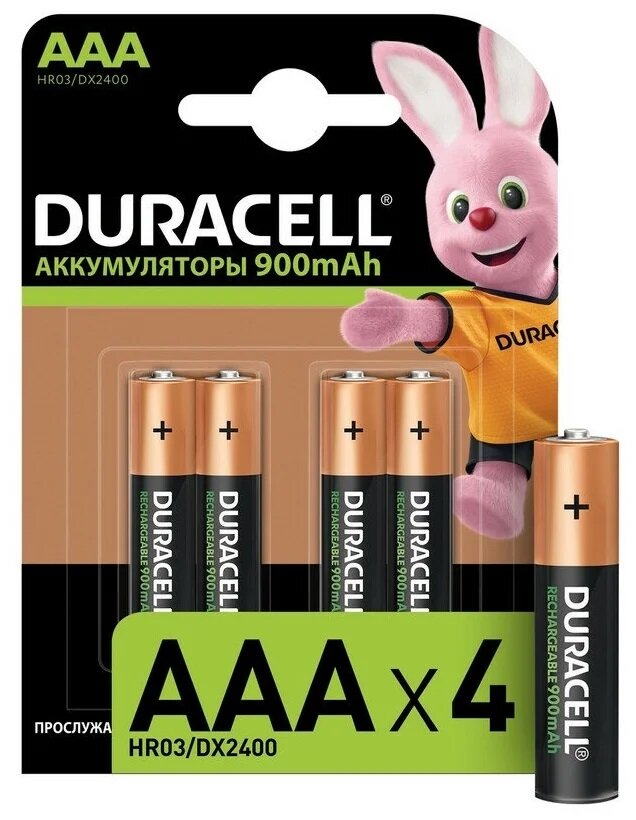Аккумуляторы DURACELL DX2400 ААА HR03 900мАч 1.2В Ni-Mh (4 шт. в упаковке)