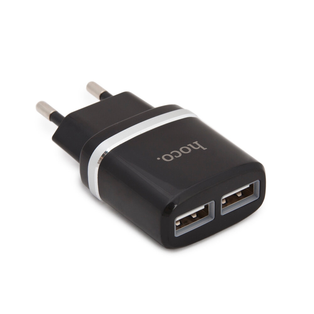 Сетевое зарядное устройство c 2 USB+кабель Lightning HOCO C12, черное, max 2.4A