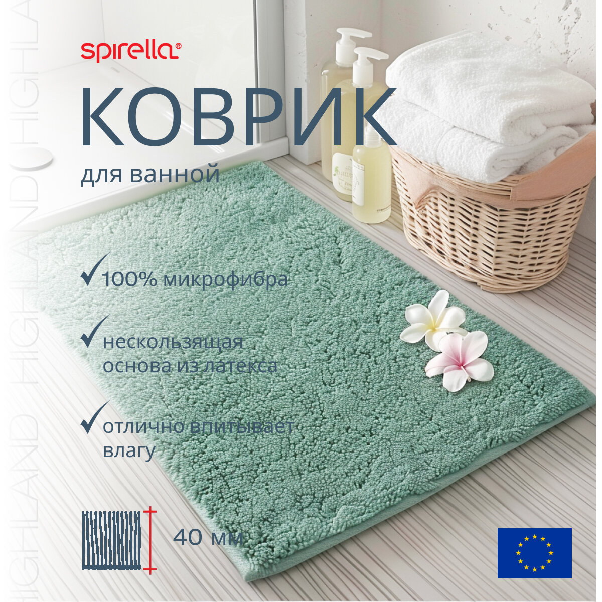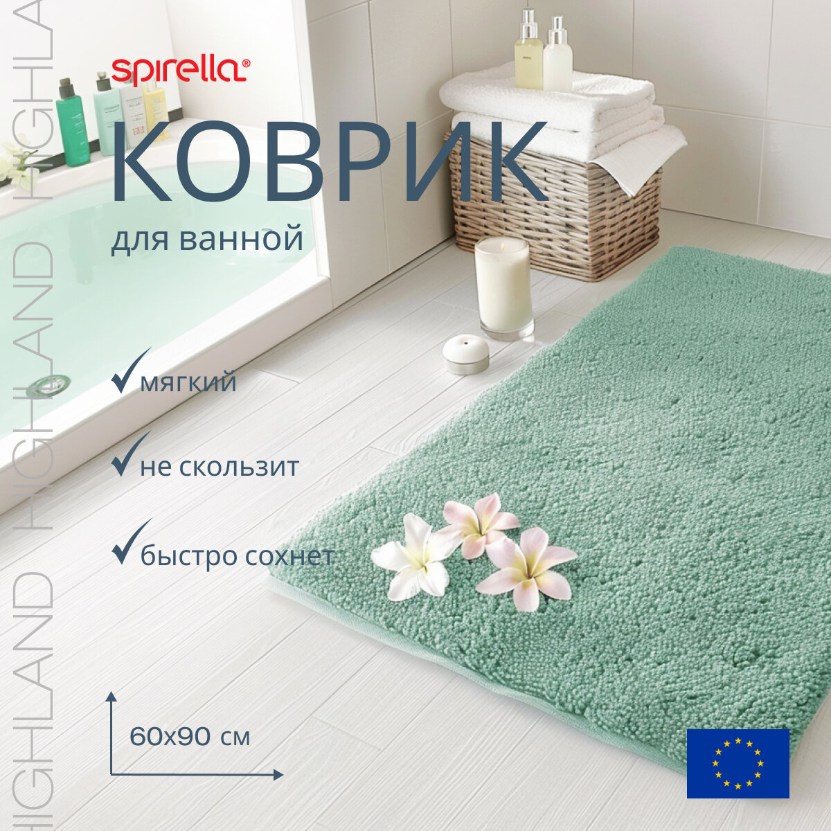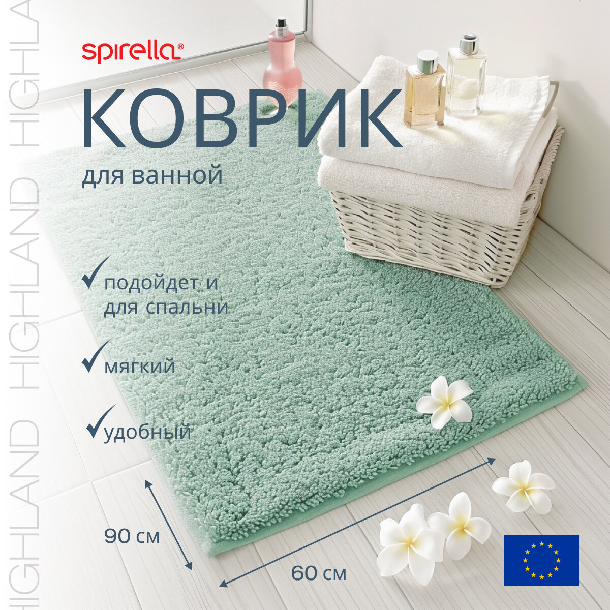 Коврик для ванной Spirella Highland, 60x90см, полиэстер, базилик 1019956
