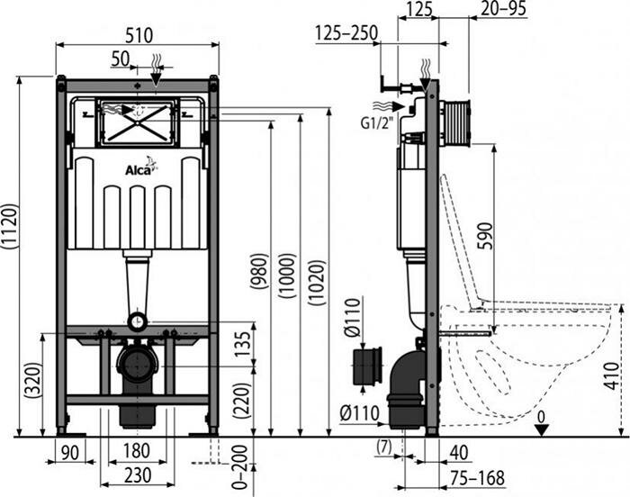 Скрытая система инсталляции для сухой установки, высота монтажа 1,2 м, G1/2", 3/6/9 л., черный, ALCA AM101/1120-0001