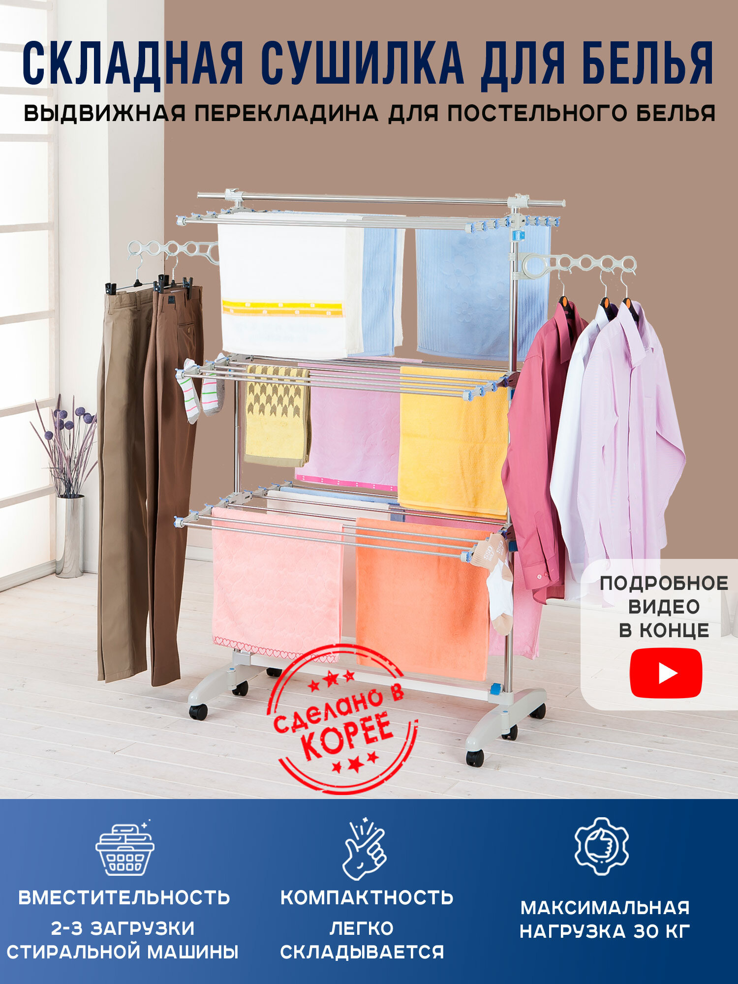 Напольная сушилка трансформер для белья Gochu Badoogi Premium (All Mom 3) интересное: