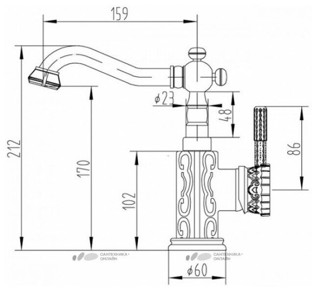 Смеситель Zorg Antic A 114U-BR для раковины, латунь бронзовый, ретро с орнаментом, винтажный, поворотный