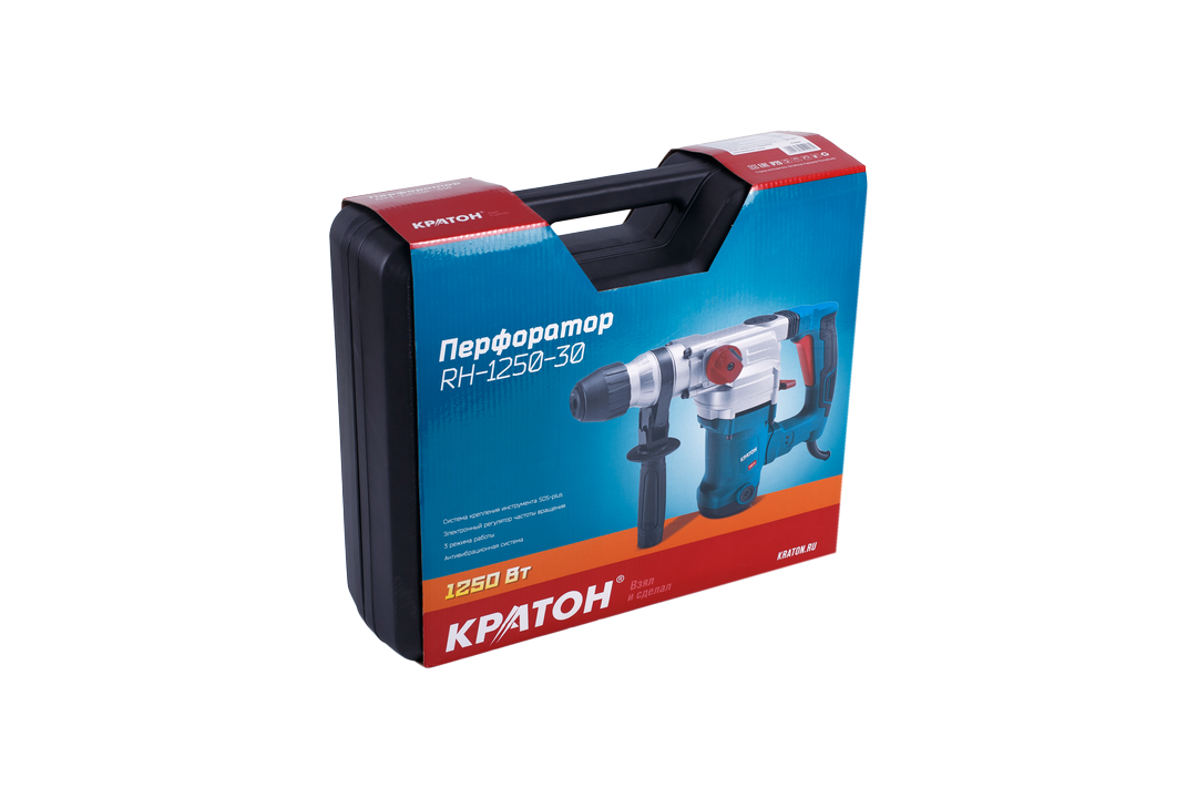 Перфоратор Кратон RH-1250-30 (Кейс, Патрон: SDS-plus; мощность: 1250 Вт Энергия удара: 4 Дж, Электронная регулировка частоты вращения)