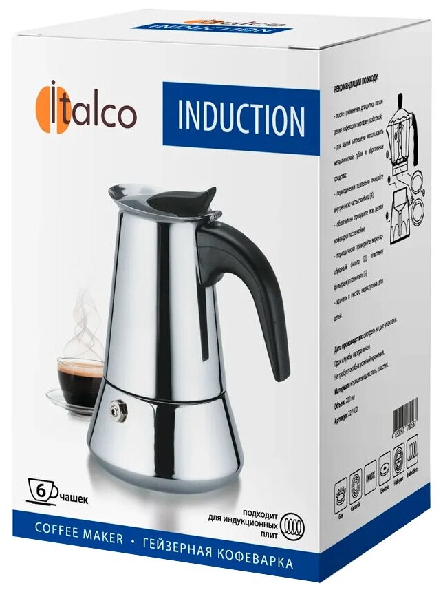 Гейзерная кофеварка Italco Induction (6 чашек), 300 мл, серебристый