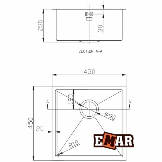 Мойка нержавеющая для кухни EMAR 450х450 EMB-113 Satine NANO