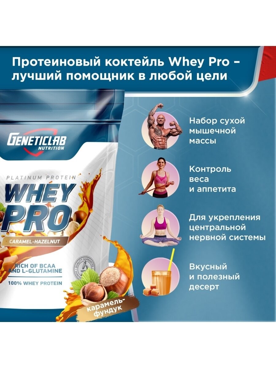 Купить Протеин сывороточный Geneticlab Nutrition Whey Pro (1000 г) Карамель-Фундук