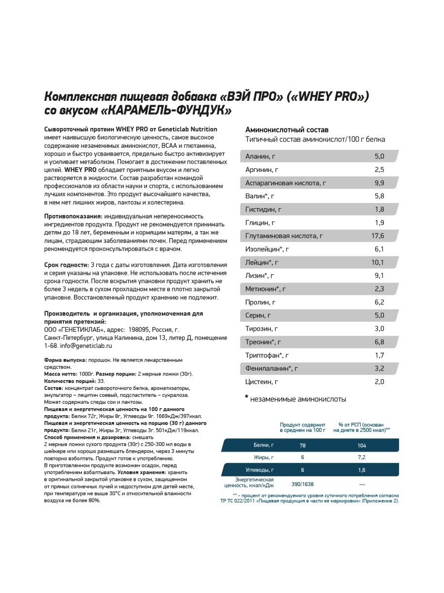 СохранитьПротеин сывороточный Geneticlab Nutrition Whey Pro (1000 г) Карамель-Фундук интересное: