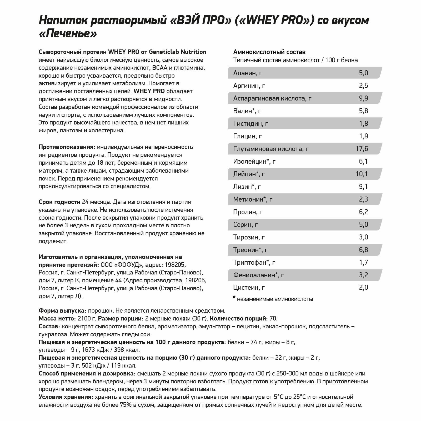 Купить GeneticLab WHEY PRO 2100г (Печенье)