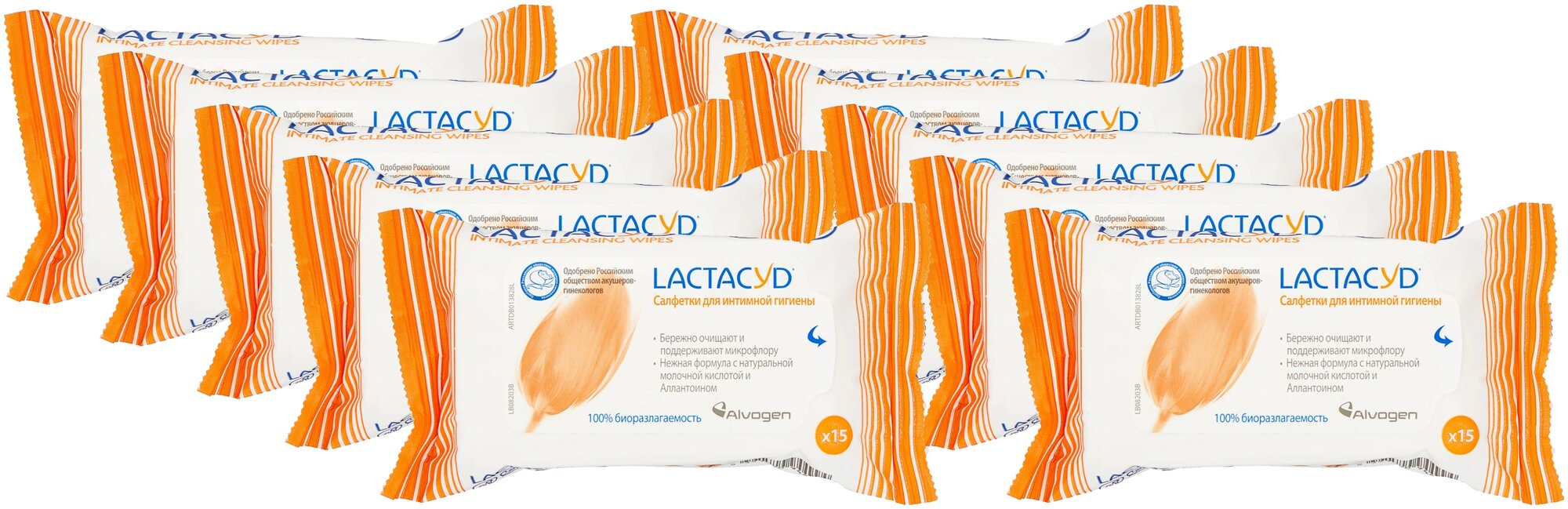 Купить Lactacyd набор для интимной гигиены: влажные салфетки для интимного ухода Лактацид / женские гигиенические салфетки для интимных зон, 10 упаковок по 15шт
