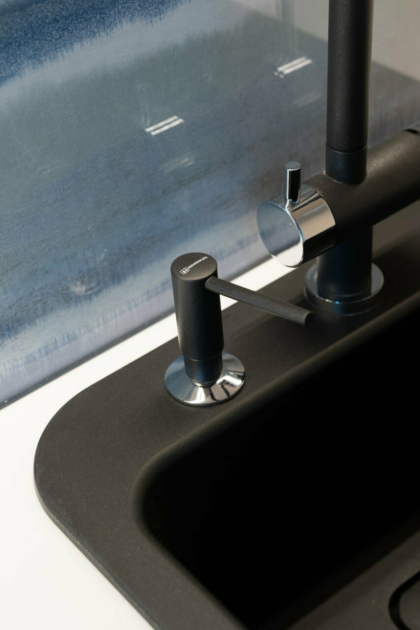 | Плюсы: | Стильная и вместительная мойка! Можно сделать два дополнительных отверстия (для диспенсера или кнопки измельчитель) |