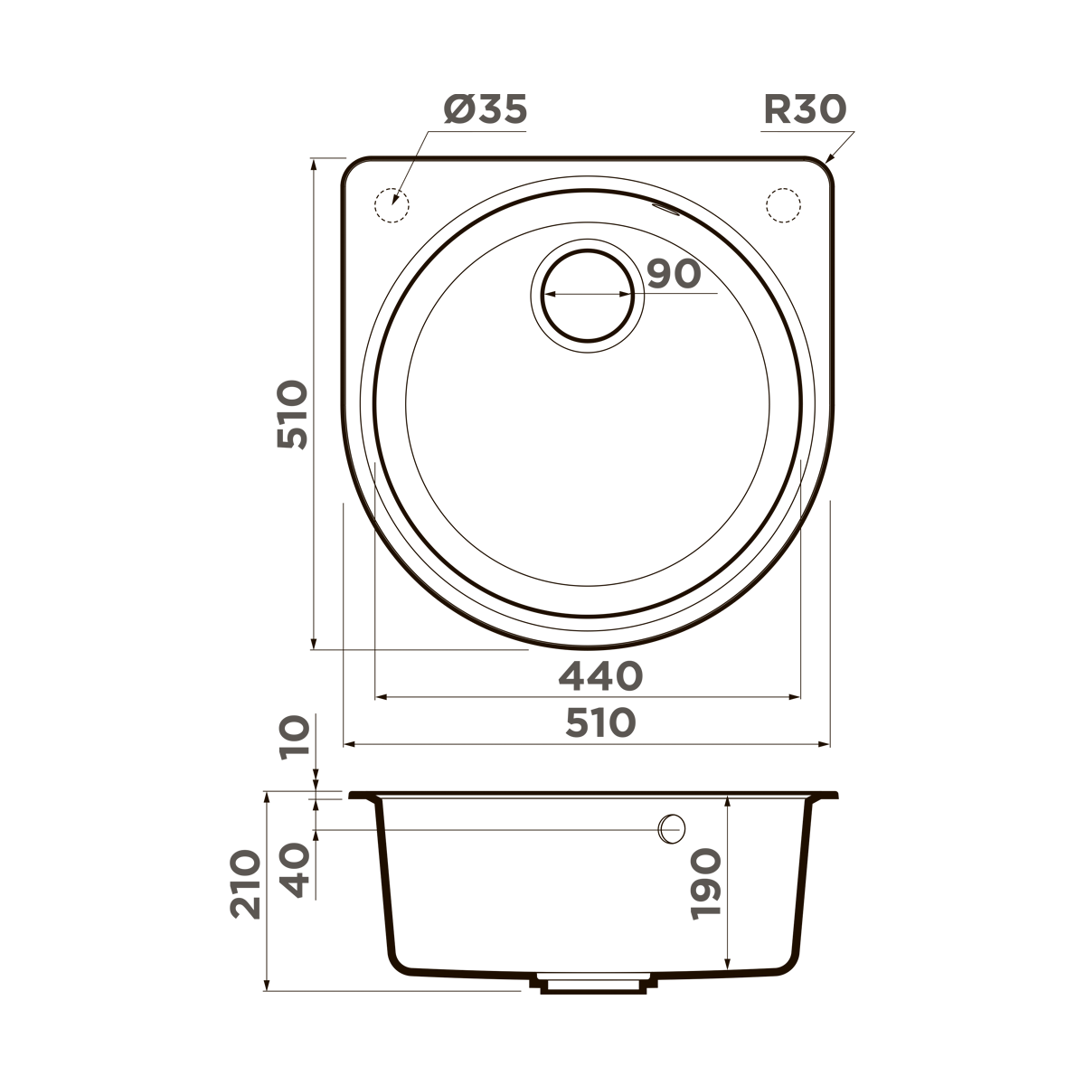 Мойка кухонная круглая Omoikiri Akegata 51-DC Темный шоколад (4993757)