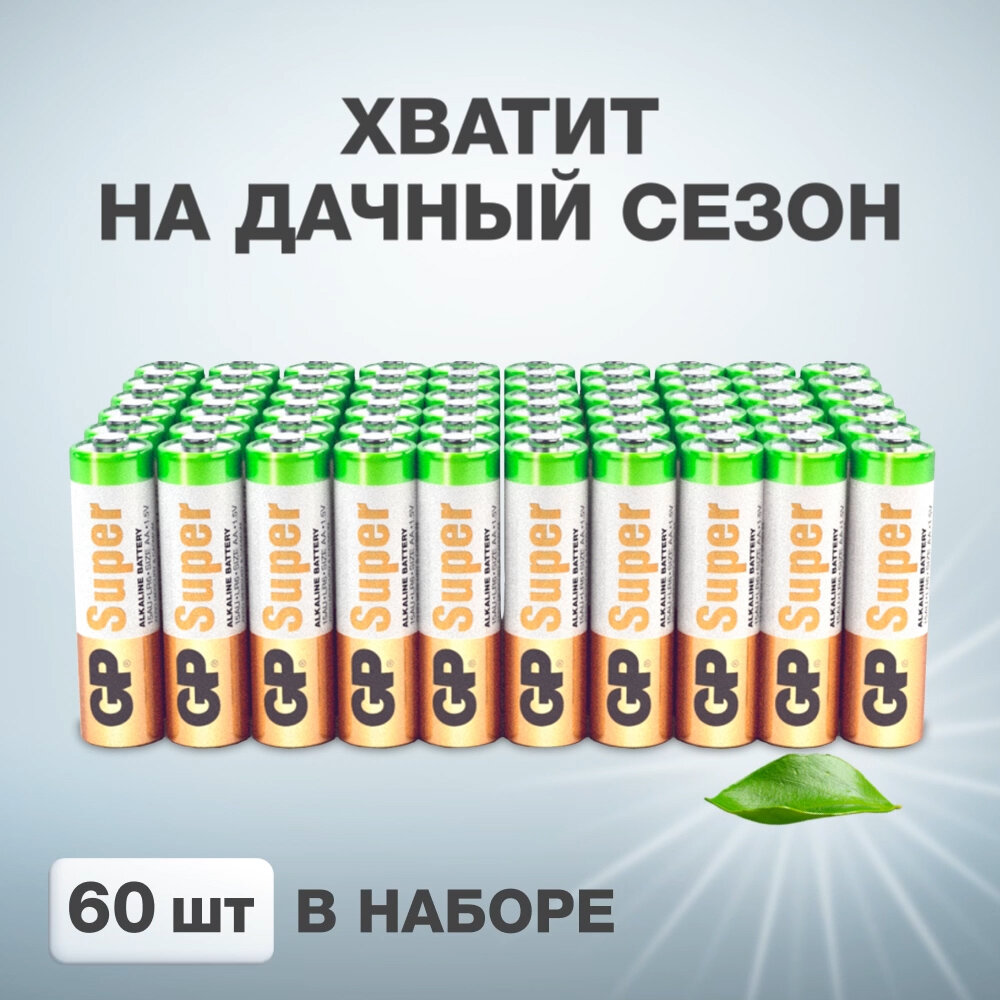 Купить Батарейки GP Super, AAA (LR03, 24А), алкалиновые, мизинчиковые, комплект 60 шт., 24A-2CRVS60