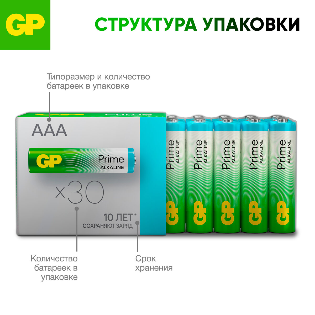 GP Батарейки ААА мизинчиковые алкалиновые Prime Alkaline, набор 20 шт