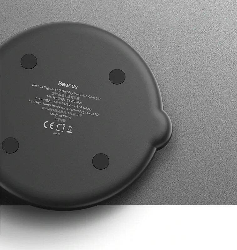 Беспроводное зарядное устройство BASEUS BSWC-P21, 2A, 5-10W, черный, с дисплеем, WXSX-01
