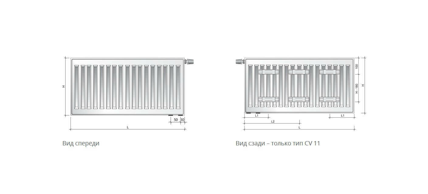 Радиатор панельный Purmo Ventil Compact 22 200, 8.56 м2, 855.8 Вт, 1100 мм., подключение универсальное (нижнее и боковое)