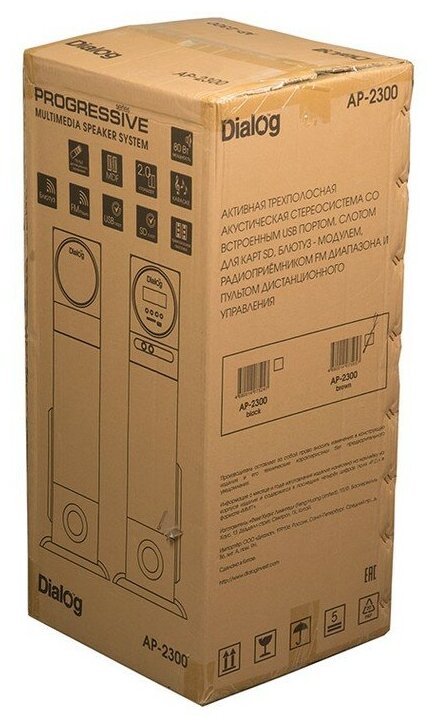 Колонки напольные Dialog Progressive AP-2300 bluetooth акустическая стерео система 2.0 - 80 Вт, usb+SD-плеер черные