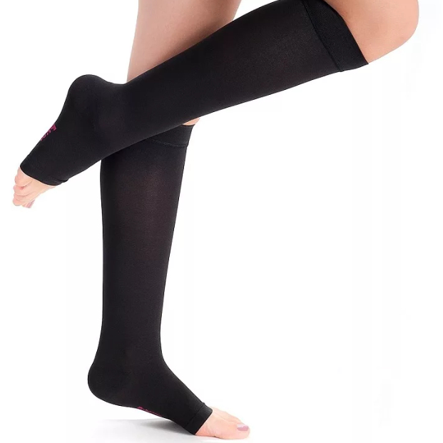 Гольфы 1 класс компрессии с открытым носком (черные) ID-210 "Idealista", длина изделия Normal 35-39 см, размер L