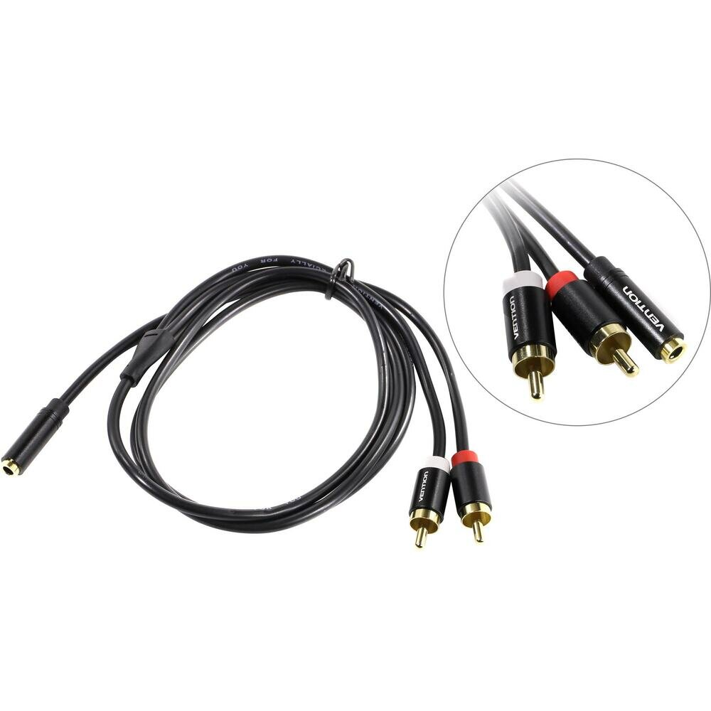 Кабель VENTION аудио Jack 3,5 mm F/2RCA M - 1м Черный