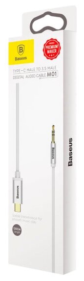 Аудио-кабель BASEUS M01, AUX , Type-C - Jack 3,5 mm, белый, CAM01-02