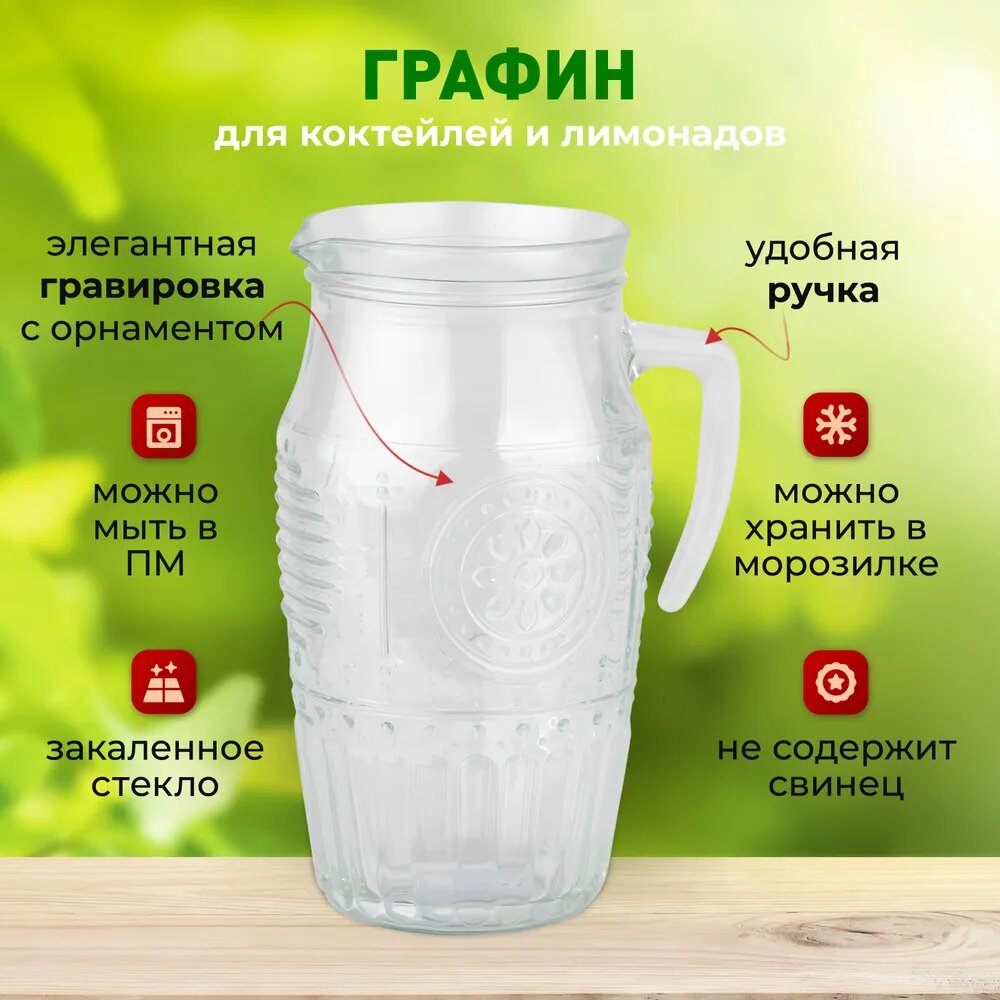 Графин стеклянный и кувшин для воды сока и лимонада 1л