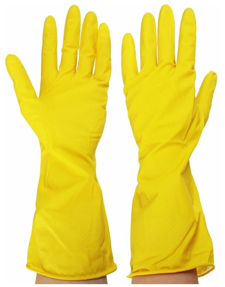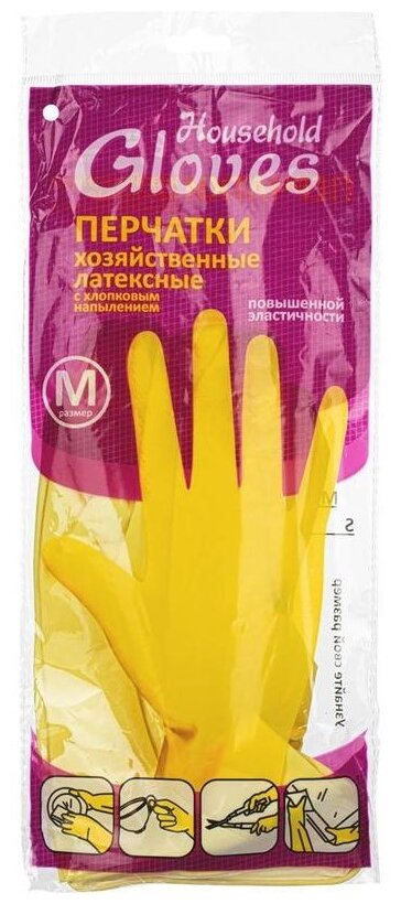 перчатки хозяйственные латексные повышенной прочности с хлопковым напылением M (6 пар)