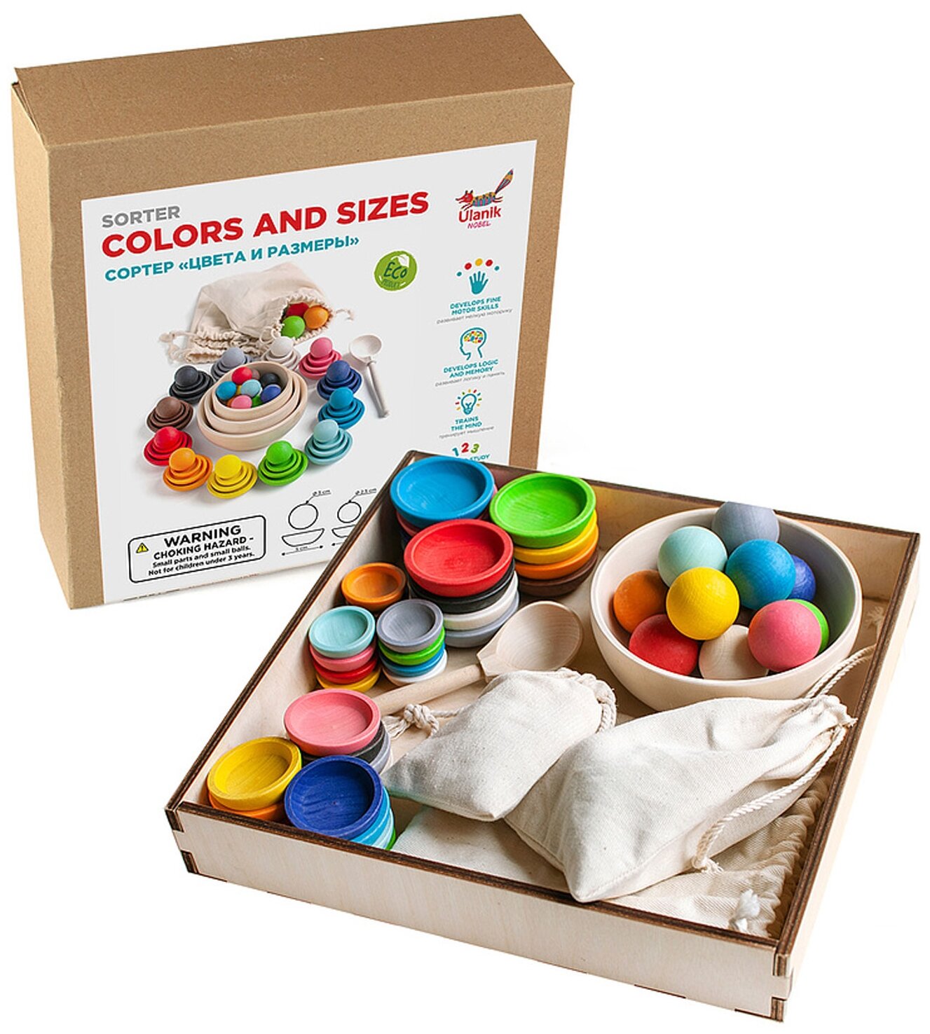 Купить Ulanik Развивающий деревянный набор для детей / сортер Цвета и размеры / по методике Монтессори