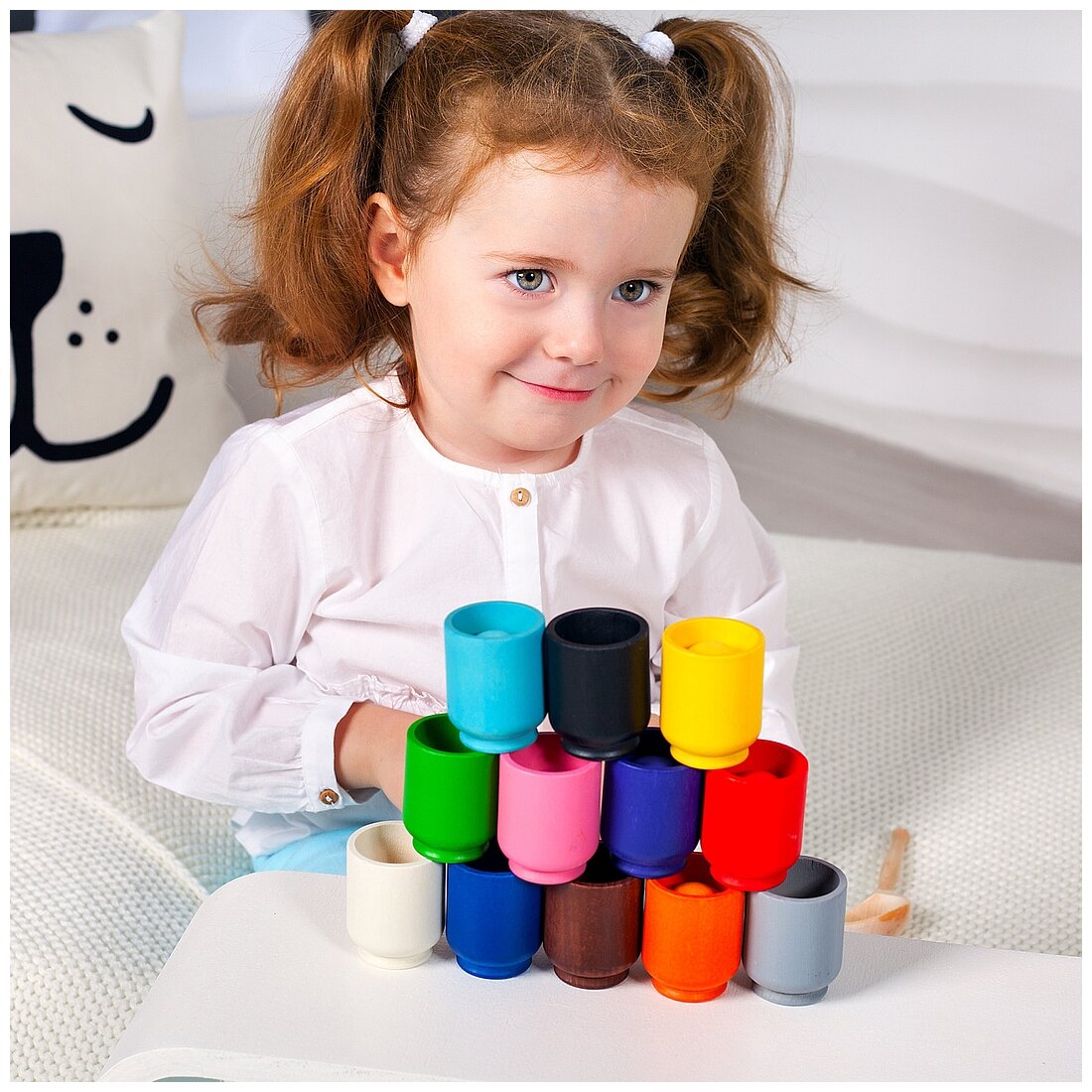 Развивающая игра из дерева / сортер для детей Шарики в стаканчиках/Ulanik