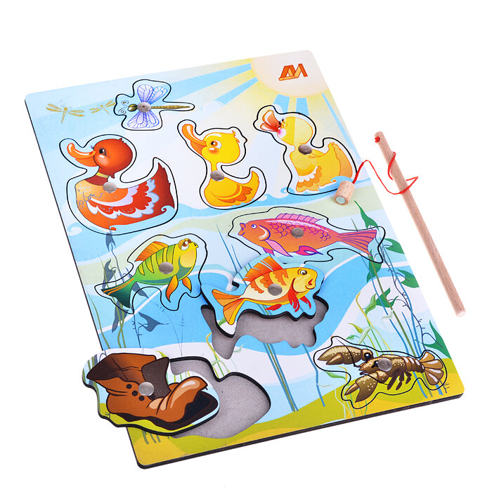Магнитный пазл-рыбалка «На пруду», Деревянные Игрушки