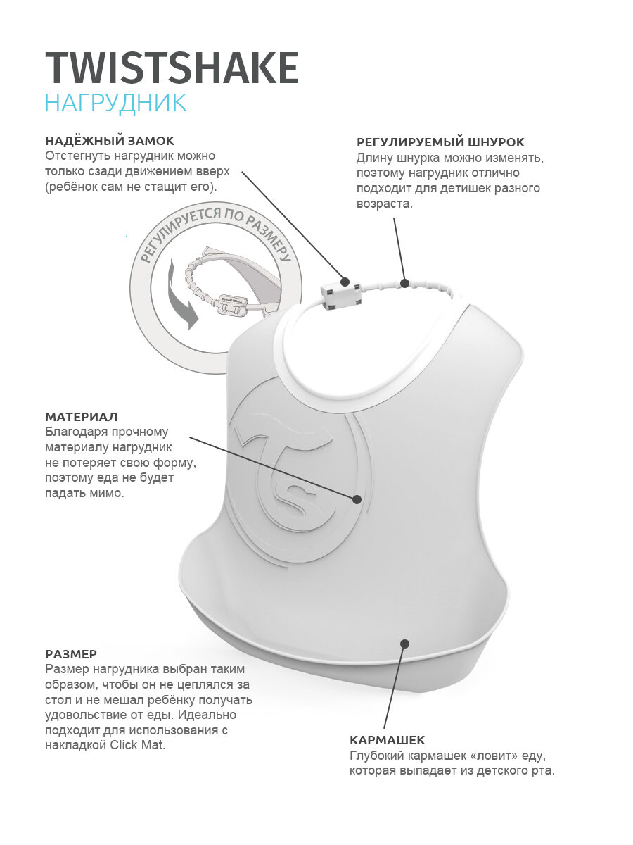СохранитьДетский нагрудник Twistshake (Bib) в наборе из 2 шт. Чёрный и белый (Black White). Возраст 4+m. интересное: