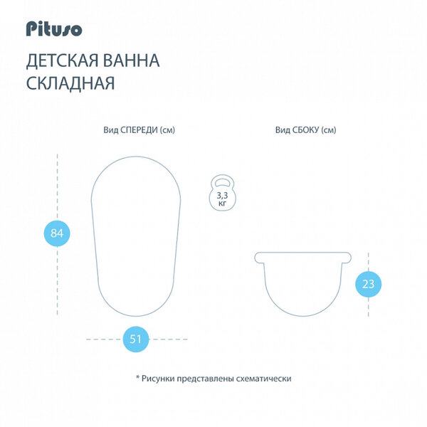 Детская ванна складная Pituso 85 см для купания малыша светло-голубая