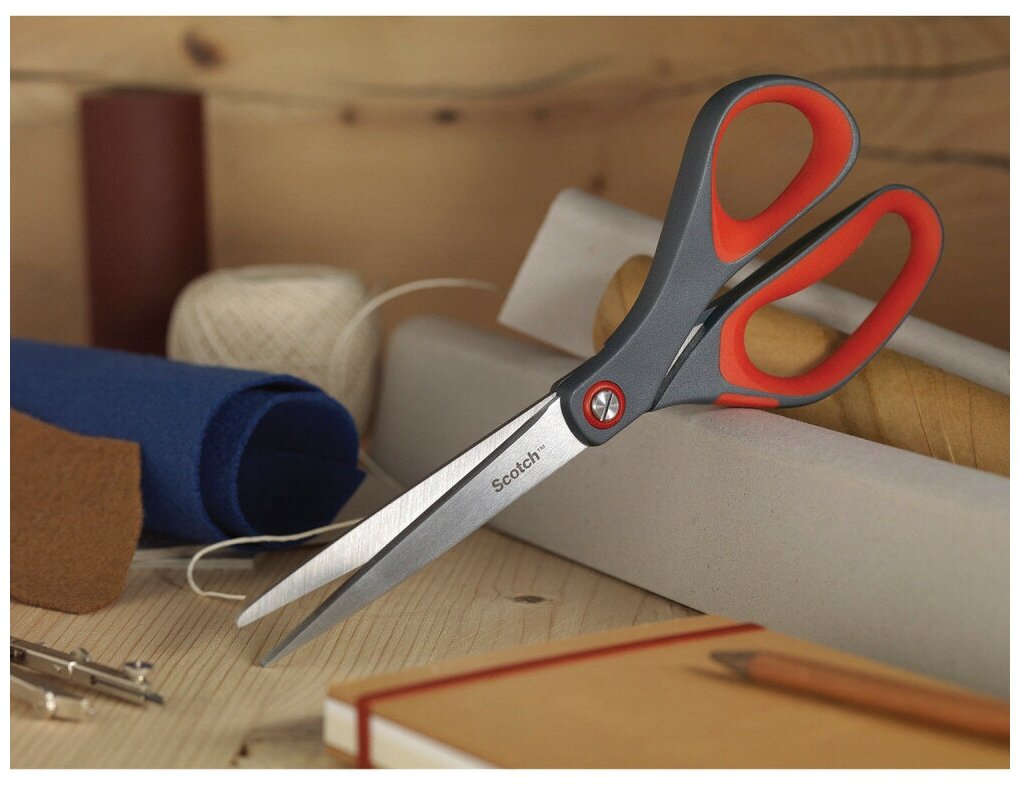 Ножницы Scotch (200 мм с пластиковыми прорезиненными анатомическими ручками красный/серый), 164365