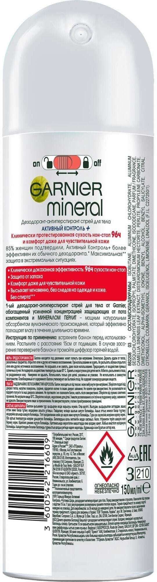 Дезодорант-антиперспирант GARNIER Mineral спрей Активный КонтрольПлюс 96часов женский TOP SKU 150мл