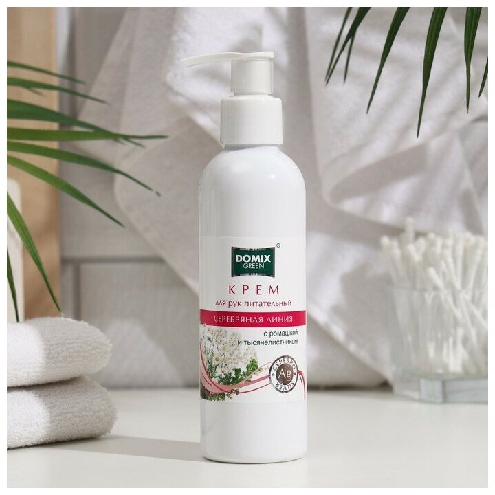 Domix Green Крем для рук Серебряная линия с ромашкой и тысячелистником и наносеребром, 200 мл